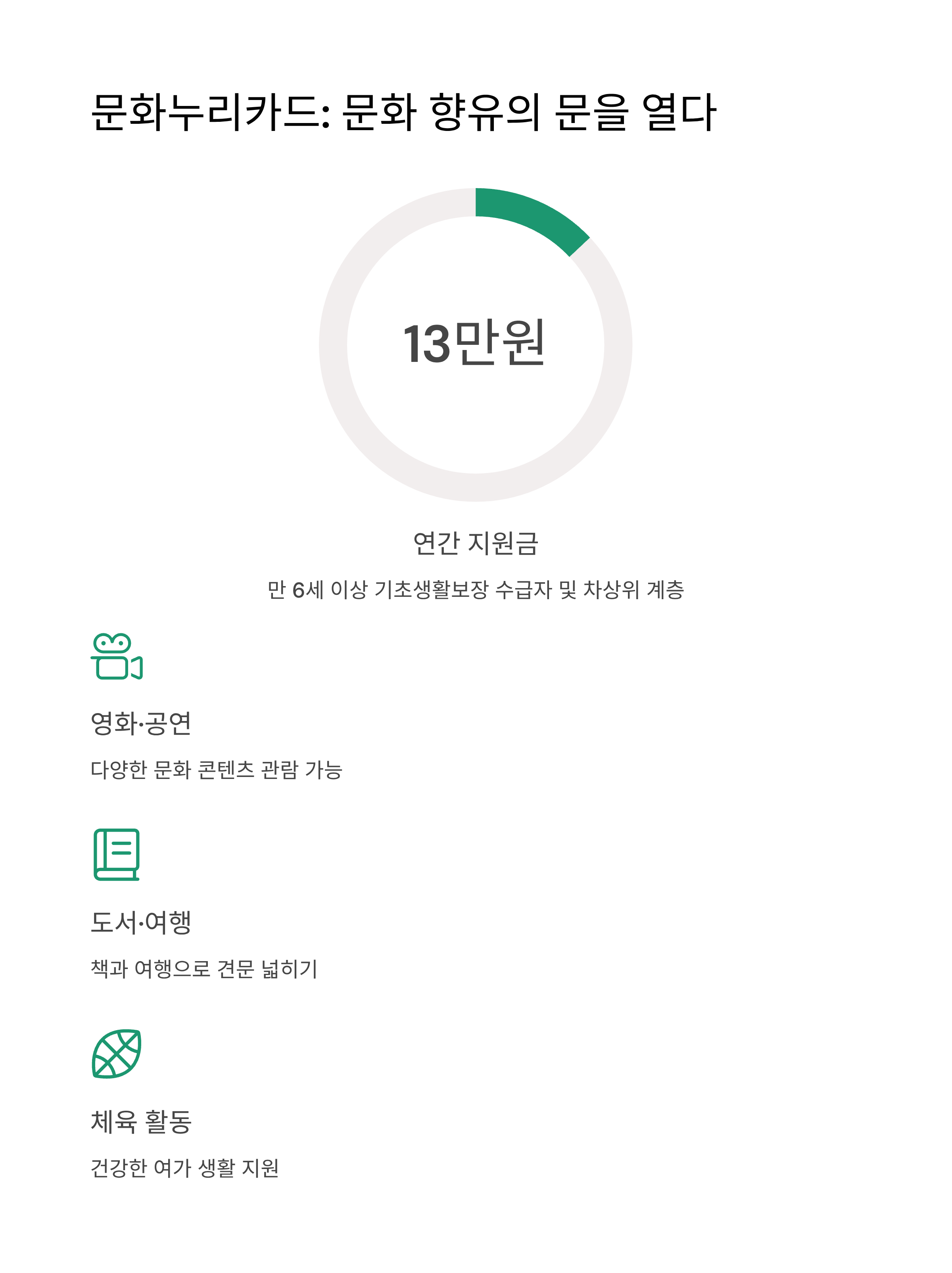 - 신청 방법: 주민센터 방문, 복지로 또는 문화누리카드 홈페이지에서 온라인 신청