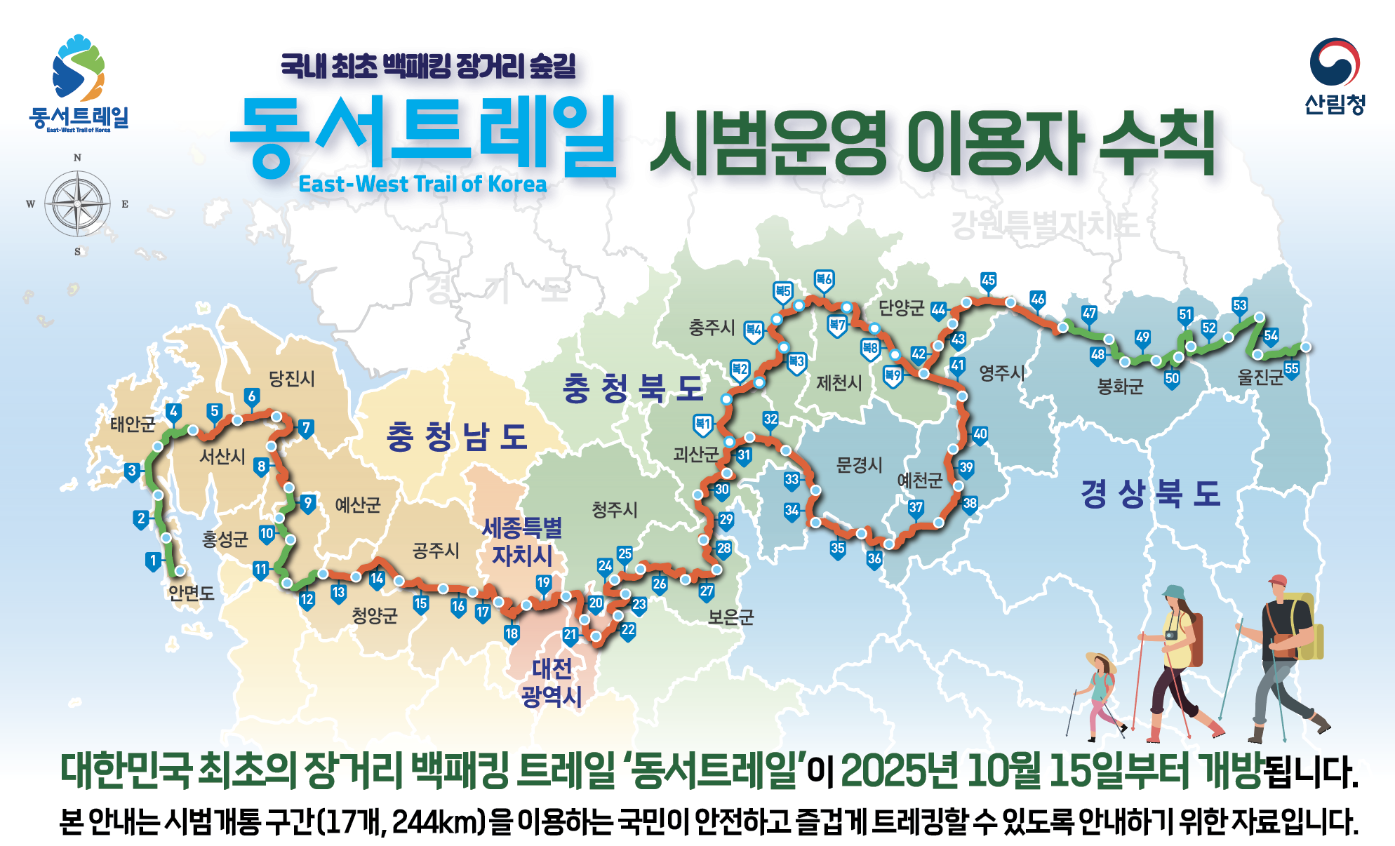 산림청이 2023년부터 조성에 착수해 현재 3년 차에 접어들며, 17개 구간(244km)이 완성되어 시범운영을 시작했습니다.