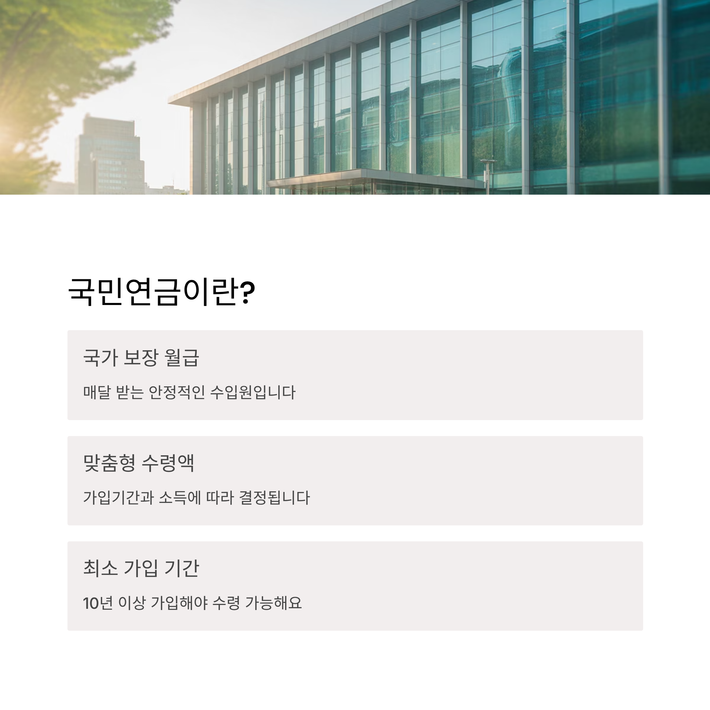 국민연금은 단순히 “내가 낸 돈”을 돌려받는 제도가 아니라, 국가가 운영하는 노후 소득 보장 장치라는 점에서 의미가 큽니다. 지금부터라도 내 연금 가입 내역을 확인하고, 장기적인 계획을 세워 두는 것이 바람직합니다.