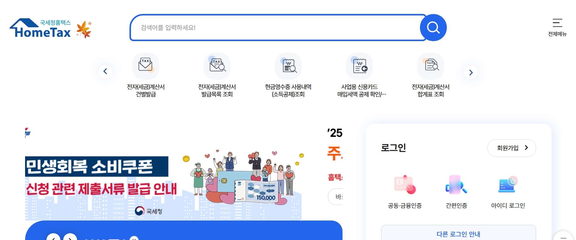 홈택스 메인화면에서 다음 순서로 클릭하세요.