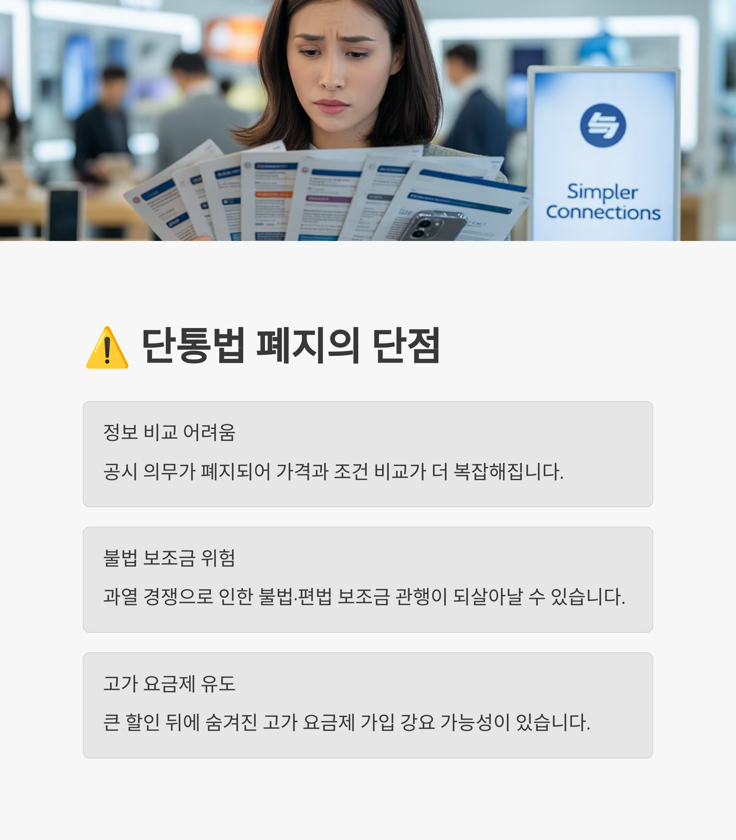 - 과다 요금제 유도 → 고가 요금제와 불필요한 부가서비스 가입을 조건으로 하는 판매 관행이 재등장할 가능성이 있습니다.