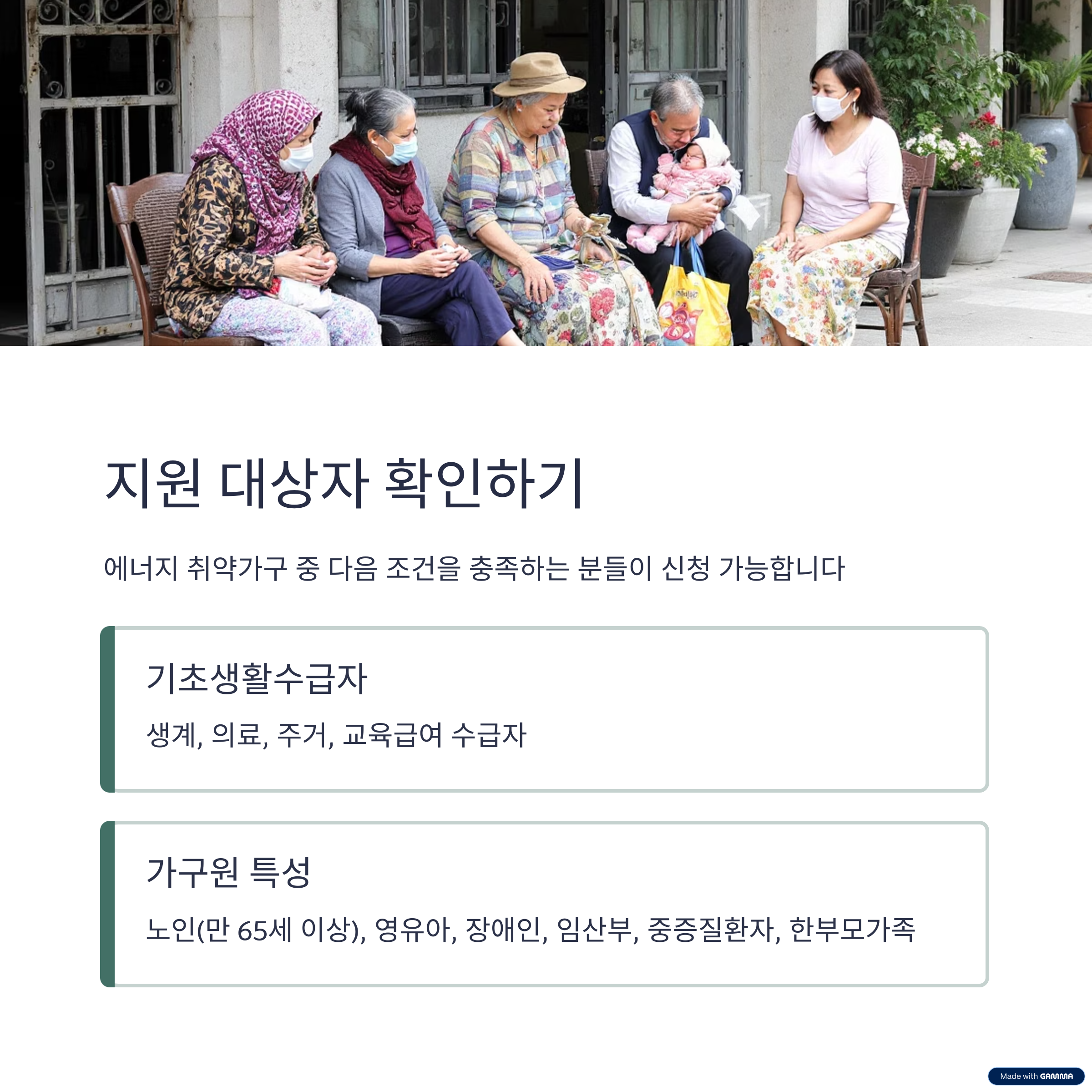 - 차상위계층(차상위 자활, 장애인, 한부모가족 등)으로 에너지 취약계층에 해당하는 가구