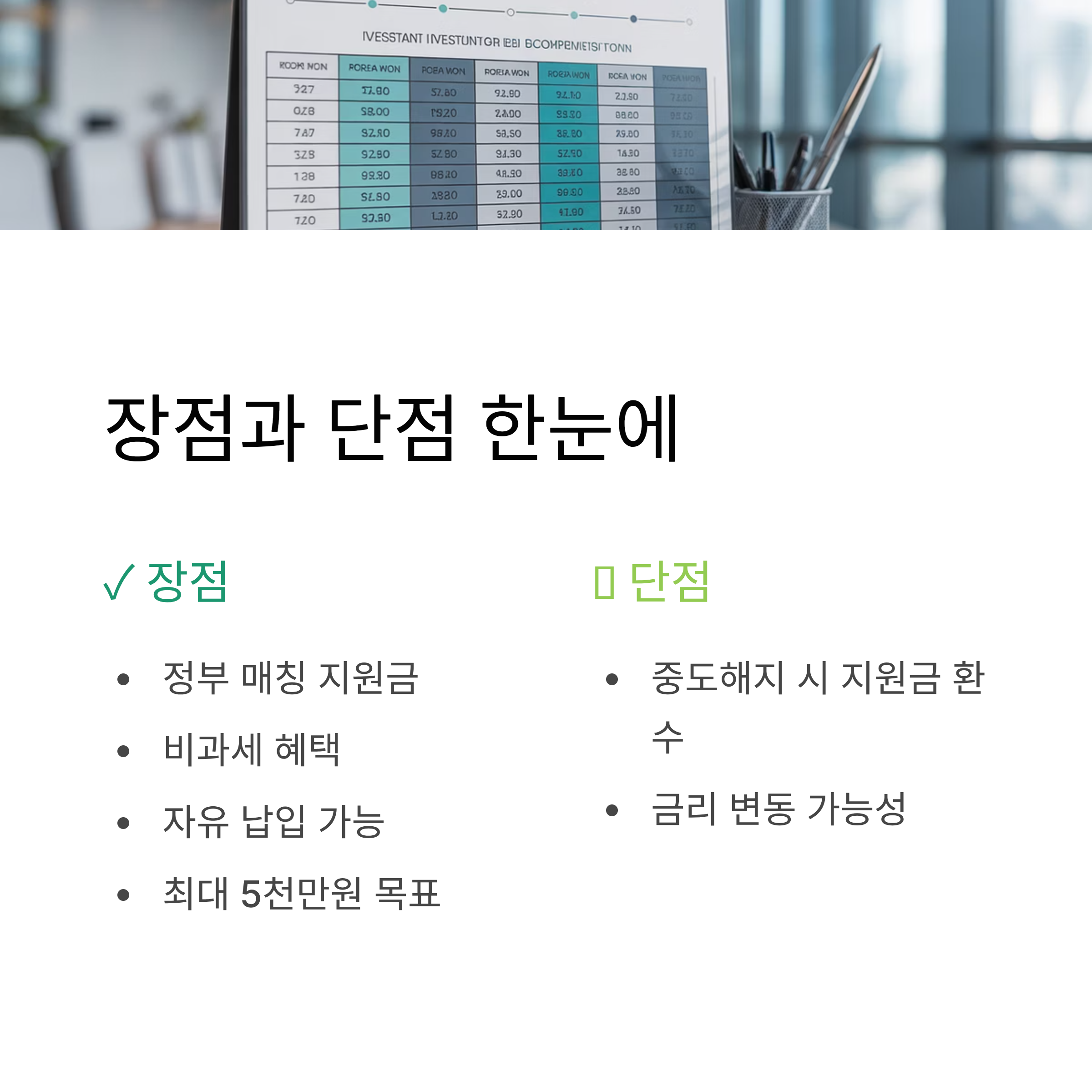 - 중도해지 시 불이익 → 정부 기여금 및 비과세 혜택 환수