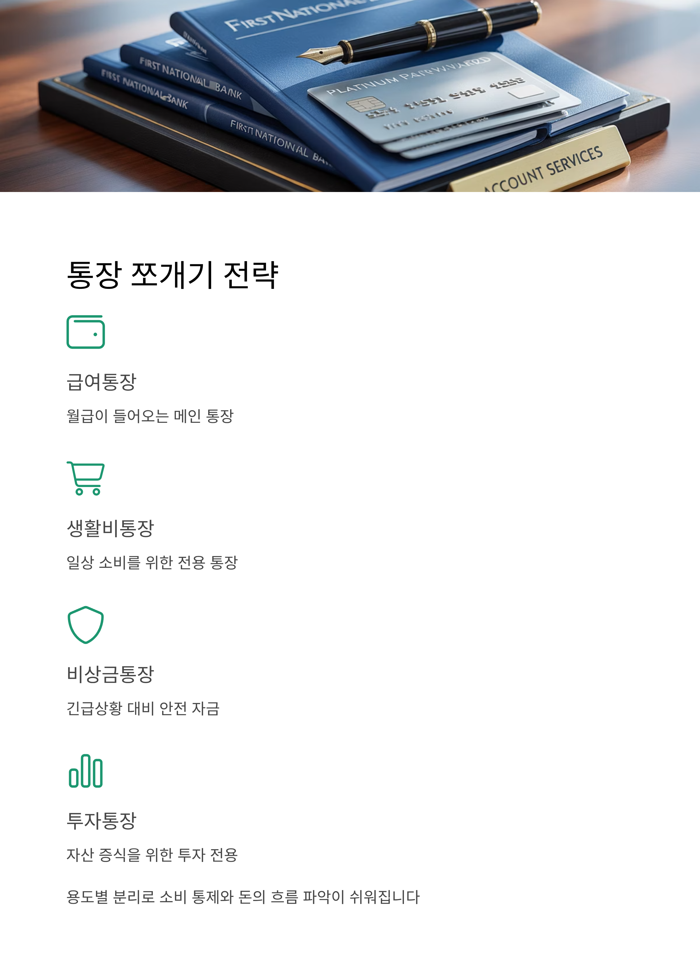 - ③ 비상금 통장: 예기치 못한 상황 대비 (최소 100만 원 이상)