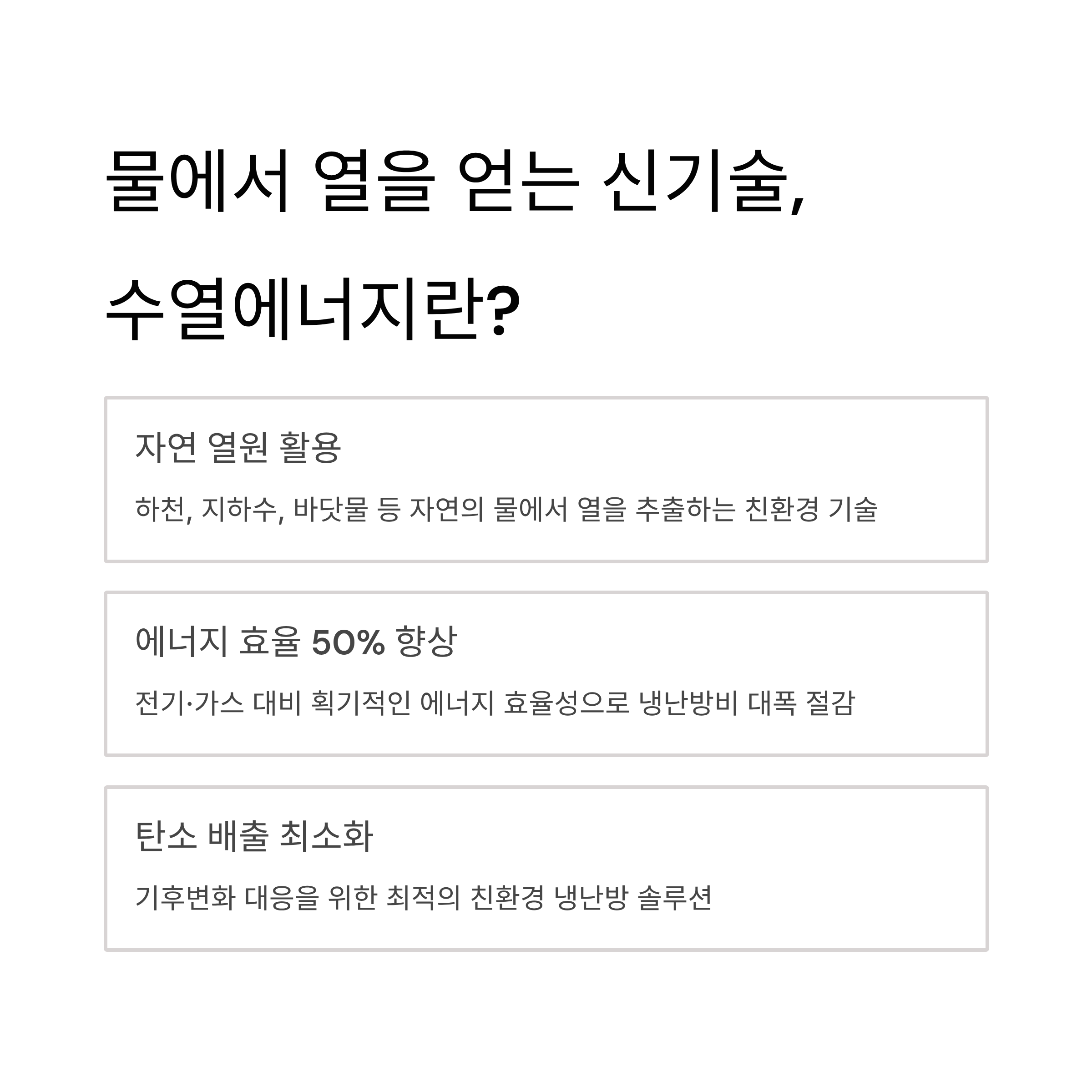 - ③ 효율성 – 연중 수온이 비교적 일정하여 냉난방 효율이 높음
