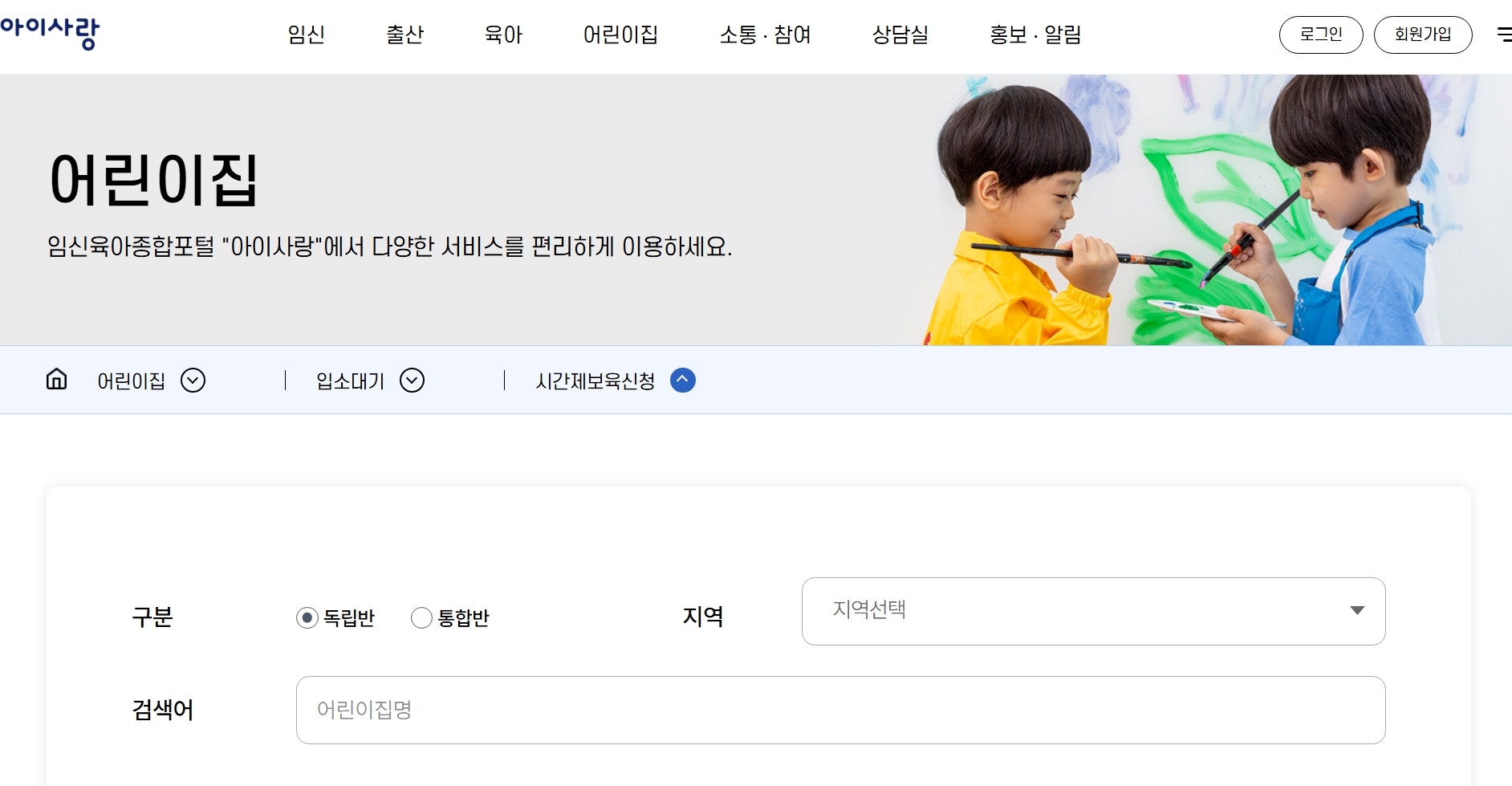 시간제 보육은 크게 독립반과 통합반으로 운영됩니다.