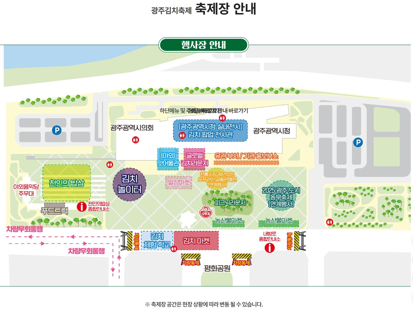 - 대중교통 권장 : 축제기간 혼잡 예상, 도보 이동 동선 안내