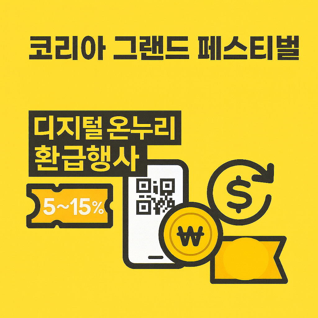 이번 코리아 그랜드 페스티벌의 핵심은 ‘소비할수록 돌려받는 구조’입니다. 전국 어디서든 참여 가능한 상생소비복권, 디지털 온누리상품권 환급, 지역사랑상품권 추가할인 등이 포함되어 있습니다.