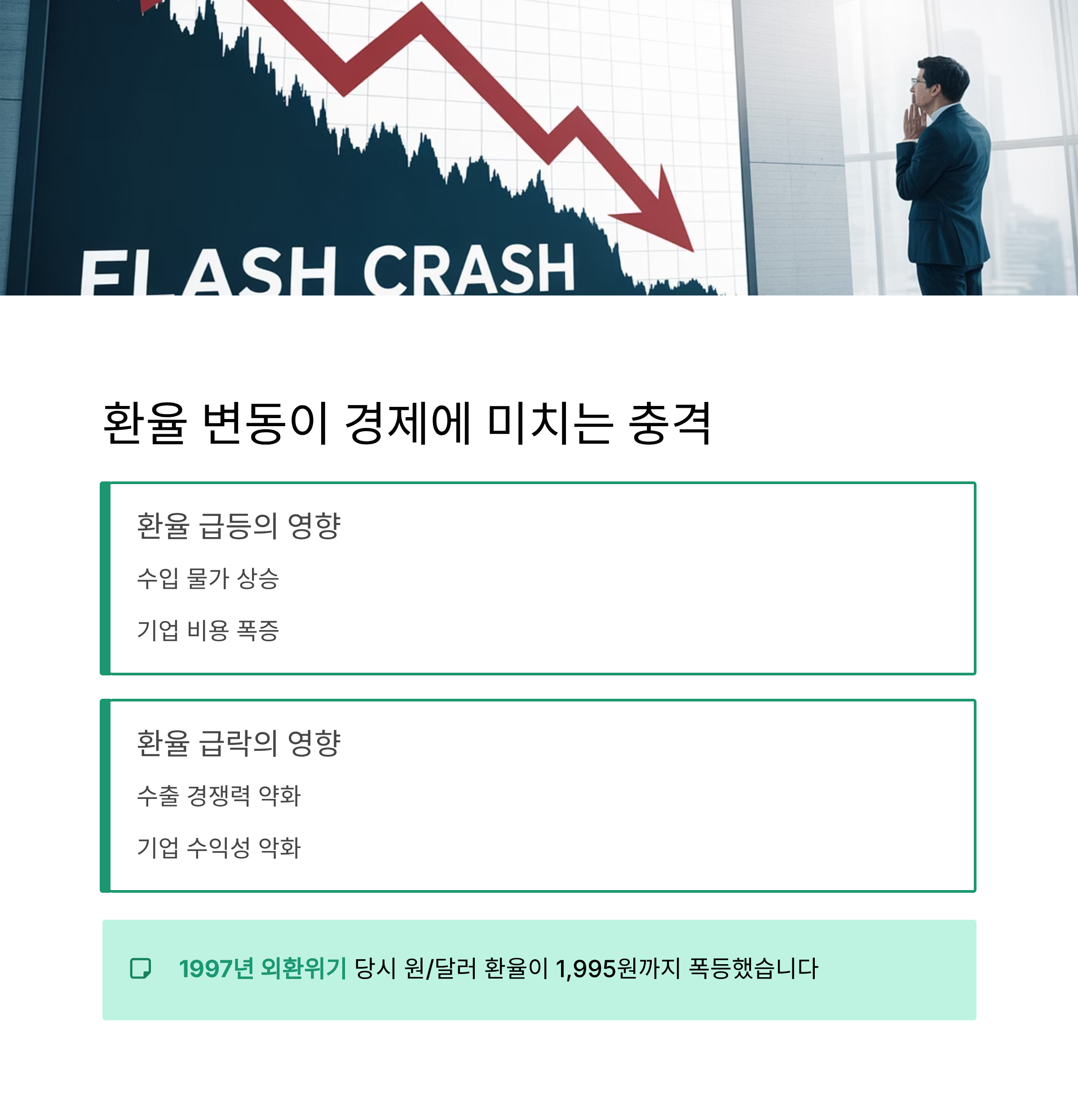 - 금융시장 불안: 환율 급등락은 투자심리 위축과 외국인 자본 이탈로 이어질 수 있음