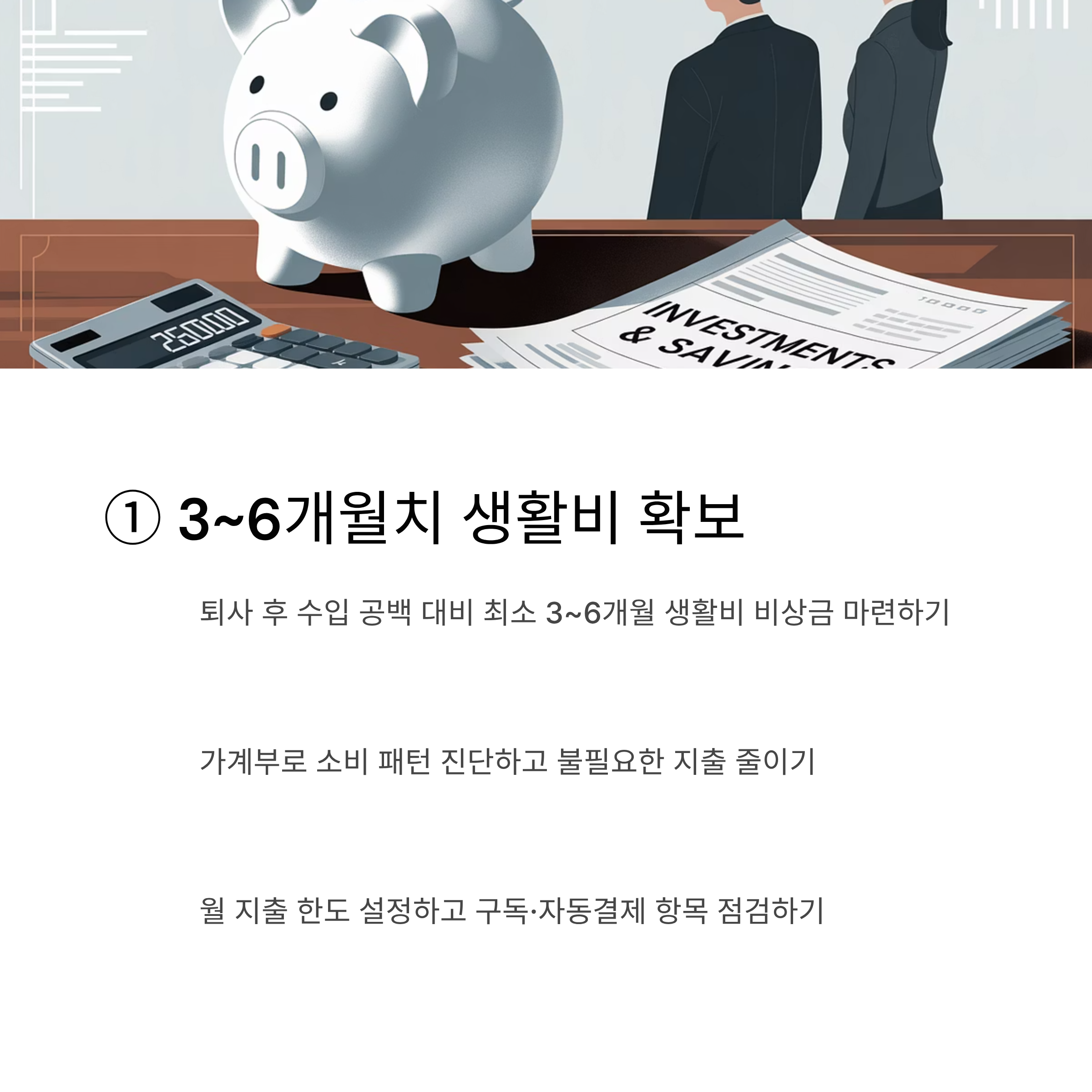 - 퇴직 전, 최소 3~6개월치 생활비 통장 분리