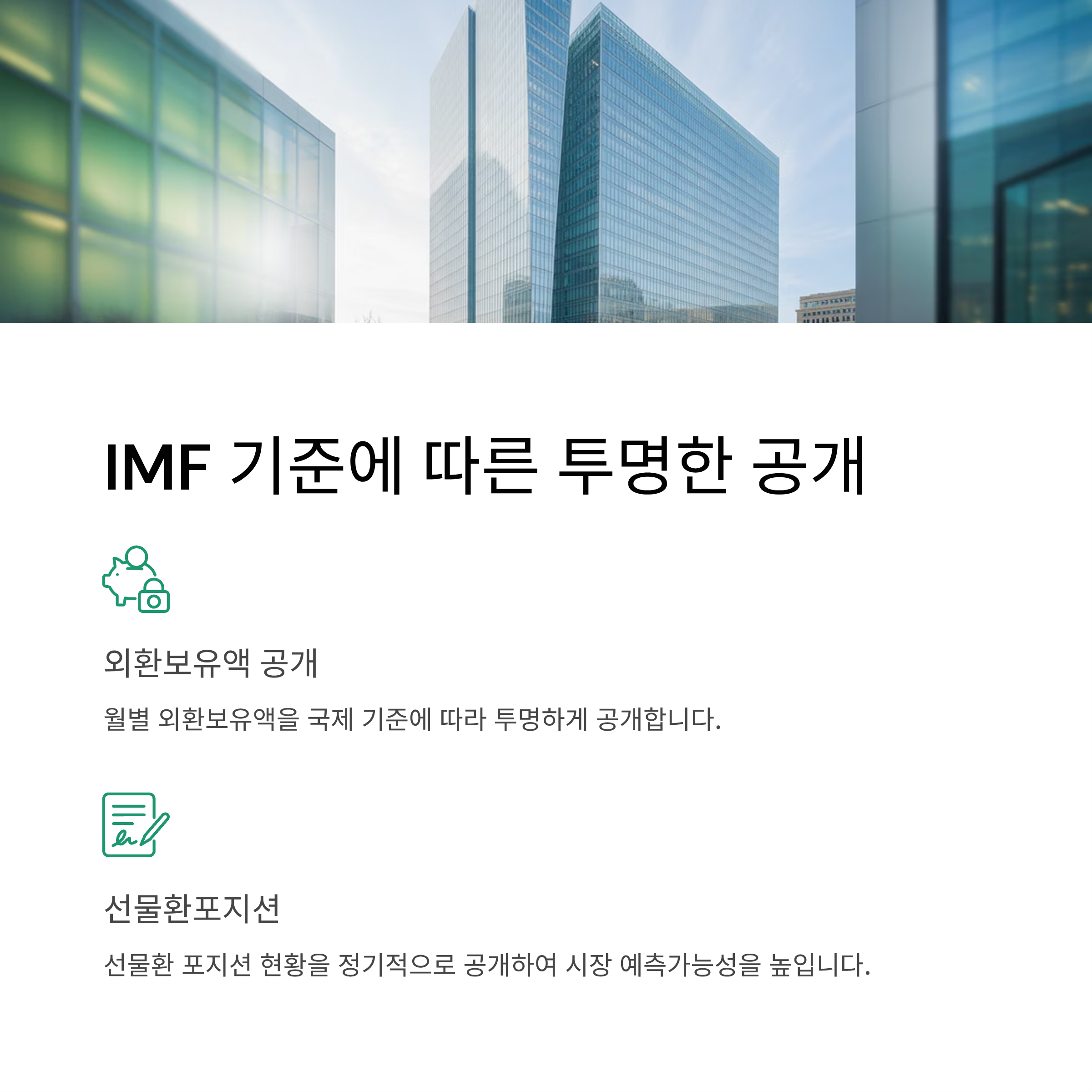 또한 IMF 기준에 따라 월별 외환보유액·선물환포지션을 공개하고, 시장 안정조치 월별 내역은 비공개로 공유합니다.