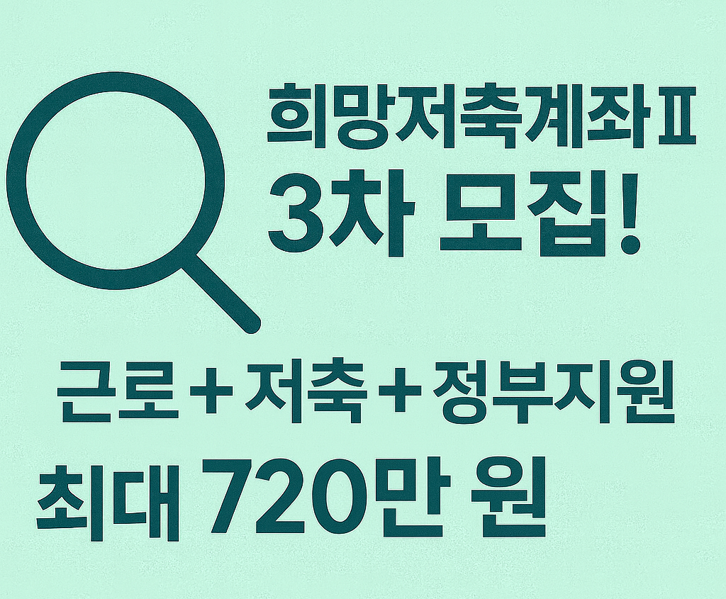 2025년 10월 11일부터 24일까지, ‘희망저축계좌Ⅱ’ 3차 신규 가입자 모집이 시작됩니다. 3년간 꾸준히 근로를 유지하며 매달 일정 금액을 저축하면, 정부가 동일 금액을 매칭 지원해 최대 720만 원의 정부지원금을 받을 수 있는 절호의 기회입니다.