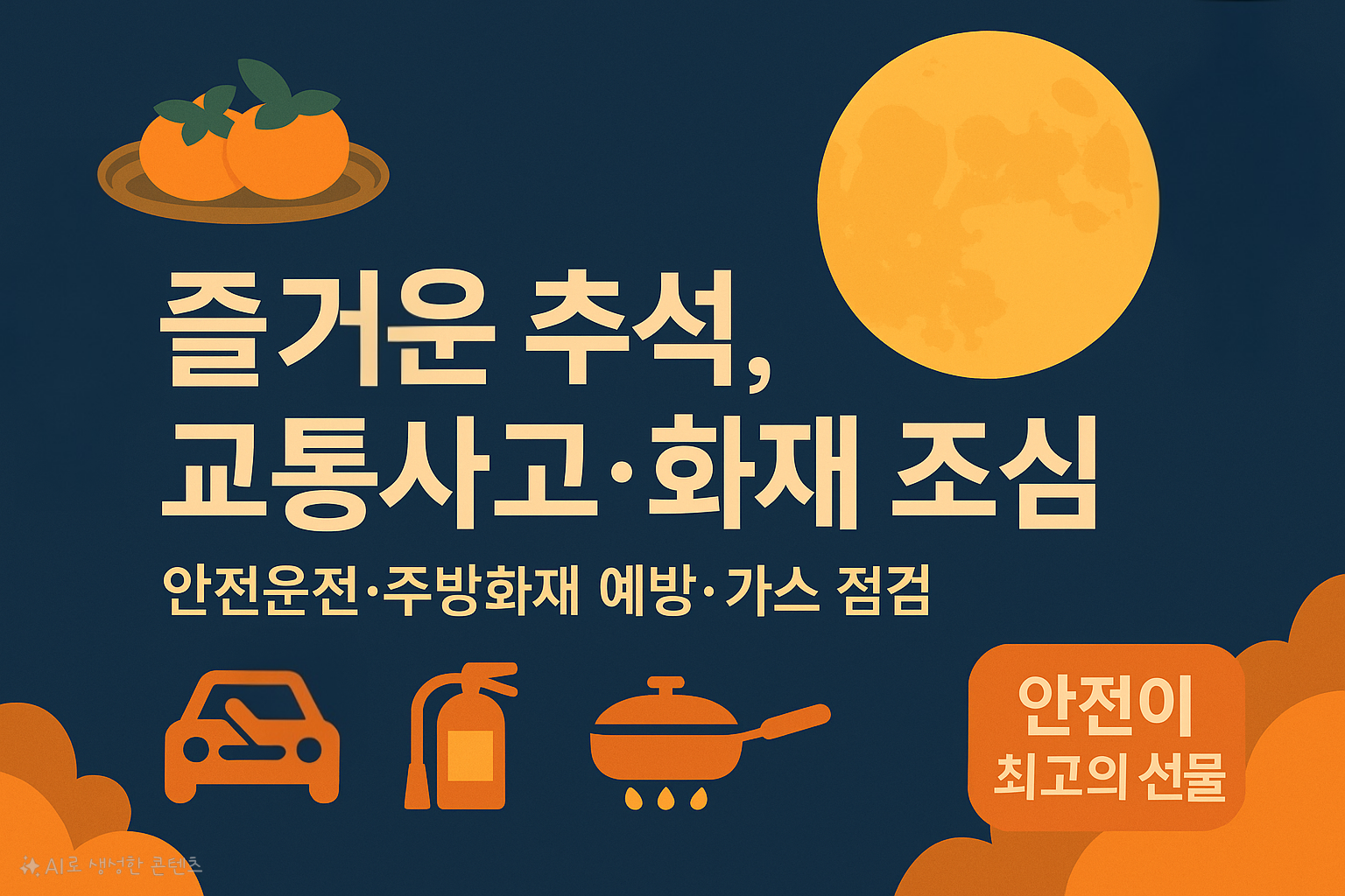 추석은 온 가족이 모이는 큰 명절입니다. 기쁨만큼이나 이동량과 조리량이 급격히 늘어나 교통사고와 화재 위험이 동시 상승합니다. 특히 귀성길 첫날과 연휴 마지막 날은 피로 누적과 정체로 사고 위험이 높아집니다. 주방에서는 기름 조리와 다중 전열기 사용으로 화재 가능성이 커집니다.