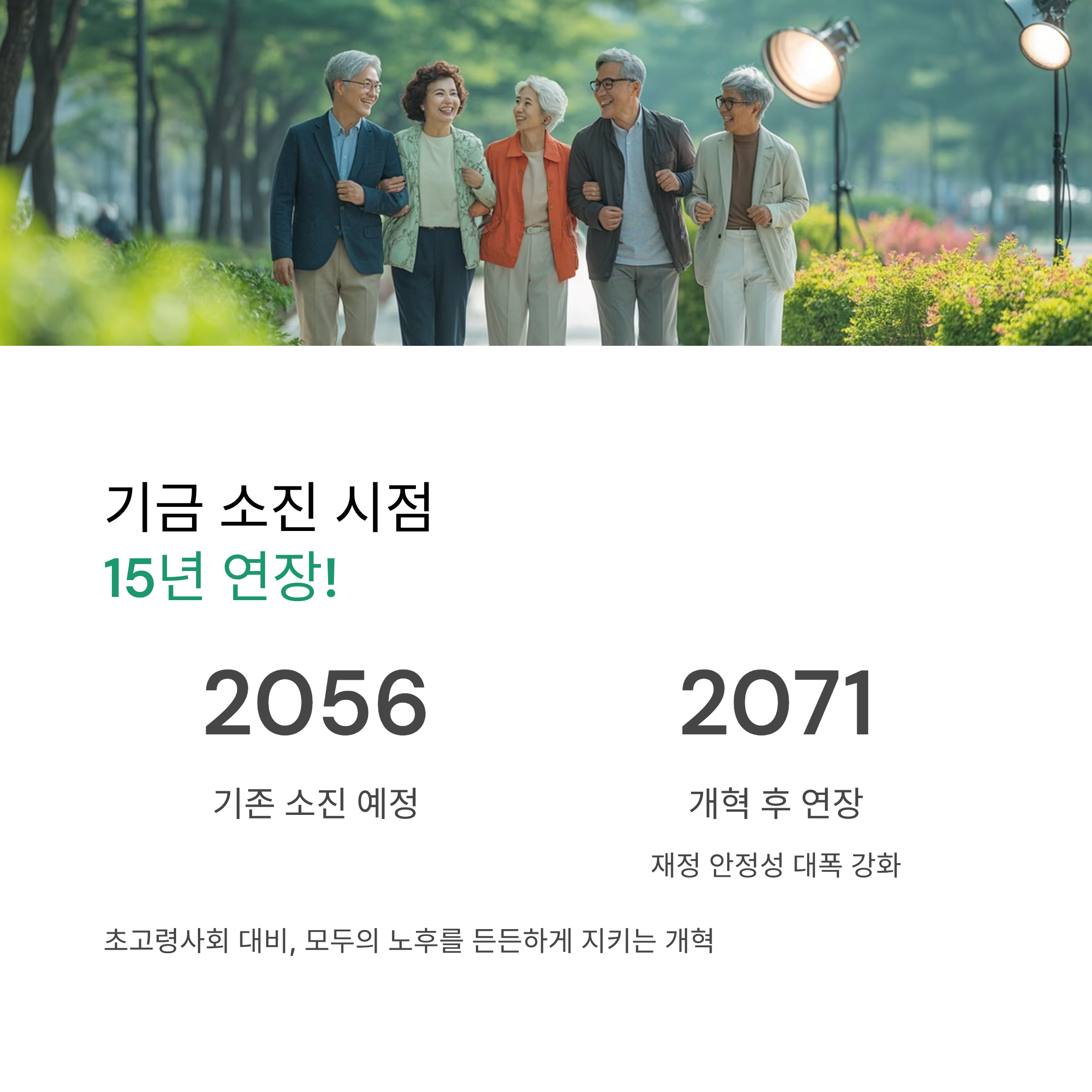 - ⑥ 기금 소진 시점 변화: 15년 연장 효과